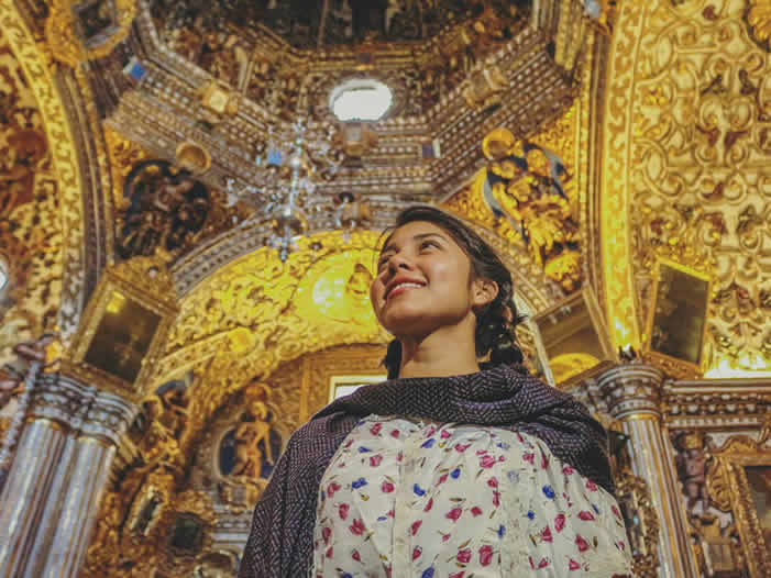 Iniciaremos el recorrido en el Árbol del Tule, una de las maravillas naturales del Estado, el cual tiene mas de 2,000 años de antigüedad, con una circunferencia de 58 metros y una altura de 42 metros. Continuaremos hacia la Zona Arqueológica de Mitla, ricamente decorada con grecas que forman figuras geométricas. Este lugar está dedicado al Dios de la muerte, Mictlantecutlí; su nombre Mixteco es Mictlán “lugar de los muertos” y en Zapoteco: Lyobaá “lugar de descanso”. Posteriomente nos dirigimos a Teotitlán del valle, lugar donde se elaboran los famosos tapetes de lana teñidos con pigmentos naturales como la grana cochinilla y elaborados a mano por familias artesanas. Seguiremos nuestro recorrido a la “Capilla de los espejos” En Tlacolula de Matamoros. La capilla es una verdadera joya del arte colonial, forjada de oro y con claros vestigios de mano de obra indígena". El estilo de la construcción varía del neoclásico al barroco. En la actualidad, la capilla conserva la totalidad de los elementos originales, los cuales son meticulosamente cuidados. Este templo ha sido comparado con el de Santo Domingo de Oaxaca y forma parte de los monumentos más importantes de México. Para concluir nuestro recorrido, visitaremos una destilería de Mezcal, en el cual aprenderás el proceso de elaboración de la bebida y podrás degustar sus diferentes variedades. Tiempo libre en el restaurante para disfrutar de comida tradicional. Apreciaremos el mercado de Tlacolula; donde cada Domingo se llena de color, textiles, artesanías, frutas y vegetales. No olvides hacer una parada por el pasillo de carnes asadas o probar el tradicional pan de yema antes de seguir caminado y disfrutando del inigualable mercado de Tlacolula. También visitaremos la "Capilla de los espejos".